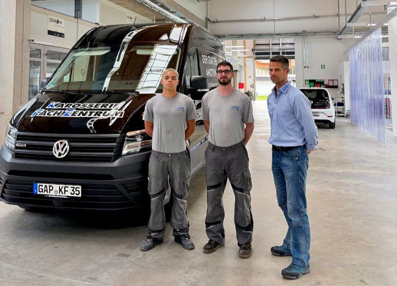 Am 2. September 2024 startete das neue Ausbildungsjahr im KarosserieFachZentrum. Betriebsleiter Andreas Fischer (rechts) begrüßte Suri Hasani (links), der eine Ausbildung zum Fahrzeuglackierer absolviert und Mitch Thiem (Mitte), der zum Karosserie- und Fahrzeugbaumechaniker mit Fachrichtung Karosserieinstandhaltungstechnik ausgebildet wird. Das gesamte Team wünscht den beiden einen guten Start ins Berufsleben und viel Erfolg bei der Ausbildung.