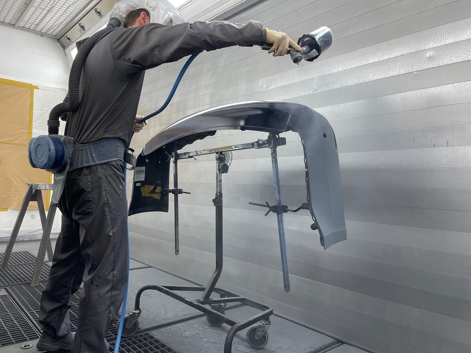 - Sie lackieren Einzelbauteile und Fahrzeuge in der Lackierkabine.